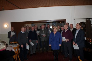 Dann verlas Hans Hermeling, der Schriftführer des MGV, das Protokoll der vorjährigen Generalversammlung, das ohne Einwände angenommen wurde. Einnahmen und Ausgaben des Vereins legte der Kassierer Josef Lübke offen. Er stellte fest, dass im vergangenen Sängerjahr in der Kasse ein leichter Überschuss verblieb. Ihm wurde von den Kassenprüfern Bernh. Gerdes und Paul Meyer eine einwandfreie Kassenführung bescheinigt. Die Entlastung des Kassierers erfolgte daraufhin einstimmig und der Schriftführer konnte den Jahresbericht 2015/2016 verlesen. Es folgte der Beitrag des Liedervaters. Damit es zügig mit dem offiziellen Teil weiter gehen konnte, verwies W. Moorkamp auf den ausführlichen Bericht des Schriftführers, dem nichts hinzuzufügen sei. So konnte er die Gelegenheit nutzen, seinen Sangeskollegen für die gute Beteiligung an den öffentlichen Auftritten des verflossenen Zeitraums zu bedanken. Er stellte fest, dass der hiesige Sängerball und das Sängerfest in Peheim zweifelsfrei die Höhepunkte gewesen seien. Auch Dirigentin Tatjana Troffmann gab sich sehr zufrieden mit den (12) Auftritten und der guten Beteiligung an den Übungsstunden. Sie freue sich jede Woche auf die Gesangstunde mit „ihren Sängern“. Sie schloss ihren Beitrag mit: „So soll es bleiben“.