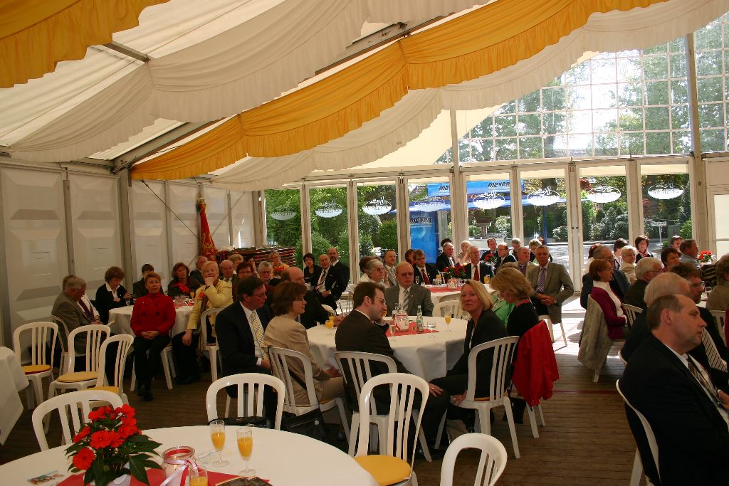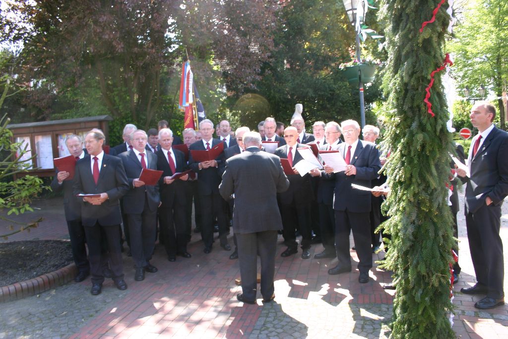 Am darauffolgenden Sonntag trafen sich die Gäste und Delegierten des Sängerbundes „Heimattreu“ im Festzelt. Im Anschluss an den Gottesdienst traten bei schönem Wetter alle 26 teilnehmenden Chöre und Musikvereine zum gemeinsamen Umzug durch den Ort an. Ein besonderes Highlight stellte der festlich geschmückte Wagen mit den bezaubernden Lyra-Damen dar. Nach dem anschließenden Chorsingen im Festzelt erfolgte der Sängerkommers, an dem sich an die 1000 Sängerinnen und Sänger beteiligten. Bei Gesang und Tanz herrschte eine ausgelassene Stimmung. Einigen Mitgliedern unseres Chores wurden Ehrungen zuteil: Für ihre 50-jährige Mitgliedschaft wurden H. Schmit und A. Schrandt ausgezeichnet. F. Möslein erhielt für seine 40-jährige Vereinstreue eine Ehrung.