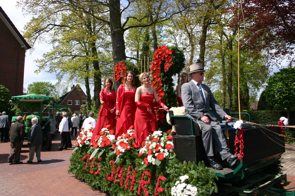 Am darauffolgenden Sonntag trafen sich die Gäste und Delegierten des Sängerbundes „Heimattreu“ im Festzelt. Im Anschluss an den Gottesdienst traten bei schönem Wetter alle 26 teilnehmenden Chöre und Musikvereine zum gemeinsamen Umzug durch den Ort an. Ein besonderes Highlight stellte der festlich geschmückte Wagen mit den bezaubernden Lyra-Damen dar. Nach dem anschließenden Chorsingen im Festzelt erfolgte der Sängerkommers, an dem sich an die 1000 Sängerinnen und Sänger beteiligten. Bei Gesang und Tanz herrschte eine ausgelassene Stimmung. Einigen Mitgliedern unseres Chores wurden Ehrungen zuteil: Für ihre 50-jährige Mitgliedschaft wurden H. Schmit und A. Schrandt ausgezeichnet. F. Möslein erhielt für seine 40-jährige Vereinstreue eine Ehrung.